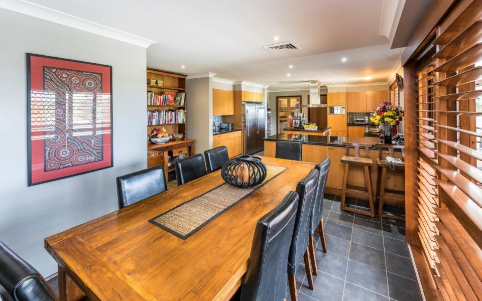 – Dining room off kitchen with views, plantation shutters and access to rear timber deck